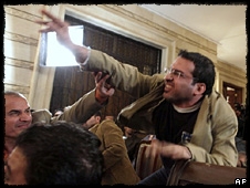 Al-Zaidi, a cameraman for Cairo-based al-Baghdadiya TV, who had been kidnapped last year by Shia militants, apparently just snapped when President Bush said that the Iraq invasion had been “necessary for US security, Iraqi stability, and world peace” and that the “war is not over.” Al-Zaidi hurled his shoes – a devastating cultural insult – at President Bush’s head from a distance of about 12 feet, before he was thrown to the ground and hauled away. (Video.)