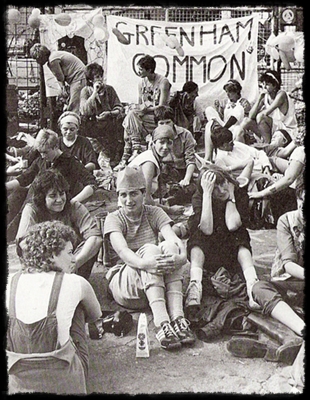 It all called to mind those great photos of the Greenham Common Women’s Peace Camp, which started in 1981 with the Welsh women marching from Cardiff to Greenham Common military base to resist the placement by the U.S. of 96 nuclear Cruise missiles pointed at Russia.