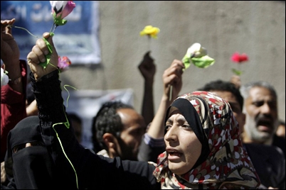 “Tawakkol Karman sat in front of her laptop, her Facebook page open, planning the next youth demonstration. Nearby were framed photos of her idols: the Rev. Martin Luther King Jr., Mahatma Gandhi and Nelson Mandela. These days, though, Karman is most inspired by her peers. ‘Look at Egypt,’ she said with pride. ‘We will win.'”