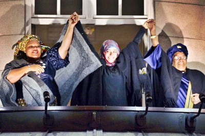 Liberian president and Catholic Ellen Johnson Sirleaf, 72, Liberian “peace warrior” and graduate of Eastern Mennonite University Leymah Gbowee, 39, and Yemen’s Arab Spring activist Tawakkul Karman, 32, accepted their Nobel Peace Prize on Saturday. As all three women make clear in their acceptance speeches, they represent millions of women around the world who decide every morning that today is the day they will fight for justice, risk for peace, and defend human dignity. Thank you all …
