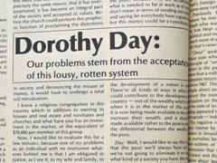 The editors put a large box in the body of this article with a subhead proclaiming in large, bold type: “Dorothy Day: Our problems stem from the acceptance of this lousy, rotten system.”