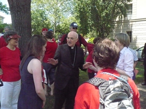 Who would believe it? When a group of protestors supporting the Leadership Conference of Women Religious showed up at the Vatican Embassy on Tuesday, the papal nuncio, Archbishop Carlo Maria Vigano, welcomed some of the group into the embassy. Two people were actually invited to sit down and chat with him. He received their petition asking that the mandate against LCWR be withdrawn … without any expectation that would actually happen, of course.
