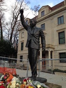 Photo taken by Joseph Ross“Nelson Mandela is a hero to me. Back in 1985, in graduate school at the University of Notre Dame, I was part of the Anti-Apartheid Network, a student group opposed to South Africa’s policy of racial separation. We were part of the international movement, largely of college students, urging divestment from firms doing business in South Africa. Mandela himself, after becoming president, said the divestment movement played a key role in bringing down the apartheid government. At Notre Dame, we used to gather every Friday at noon on the Main Building’s steps. We learned about the week’s events in South Africa from Professor Peter Walshe, a South African teaching at Notre Dame. I also became friends with Rev. Malusi Mpumlwana, a South African Anglican priest studying at Notre Dame. Malusi developed my understanding of systemic violence in ways no book could have taught me. I learned a great deal from him over endless cups of coffee and loud laughter. We students were somewhat naive, but we brought a passion to the divestment cause. It was my first experience in such a political movement and I learned a great deal about my own responsibility for those who suffer around the world. The lessons I learned from Malusi and others in the Anti-Apartheid movement guide me still. …”–Joseph Ross