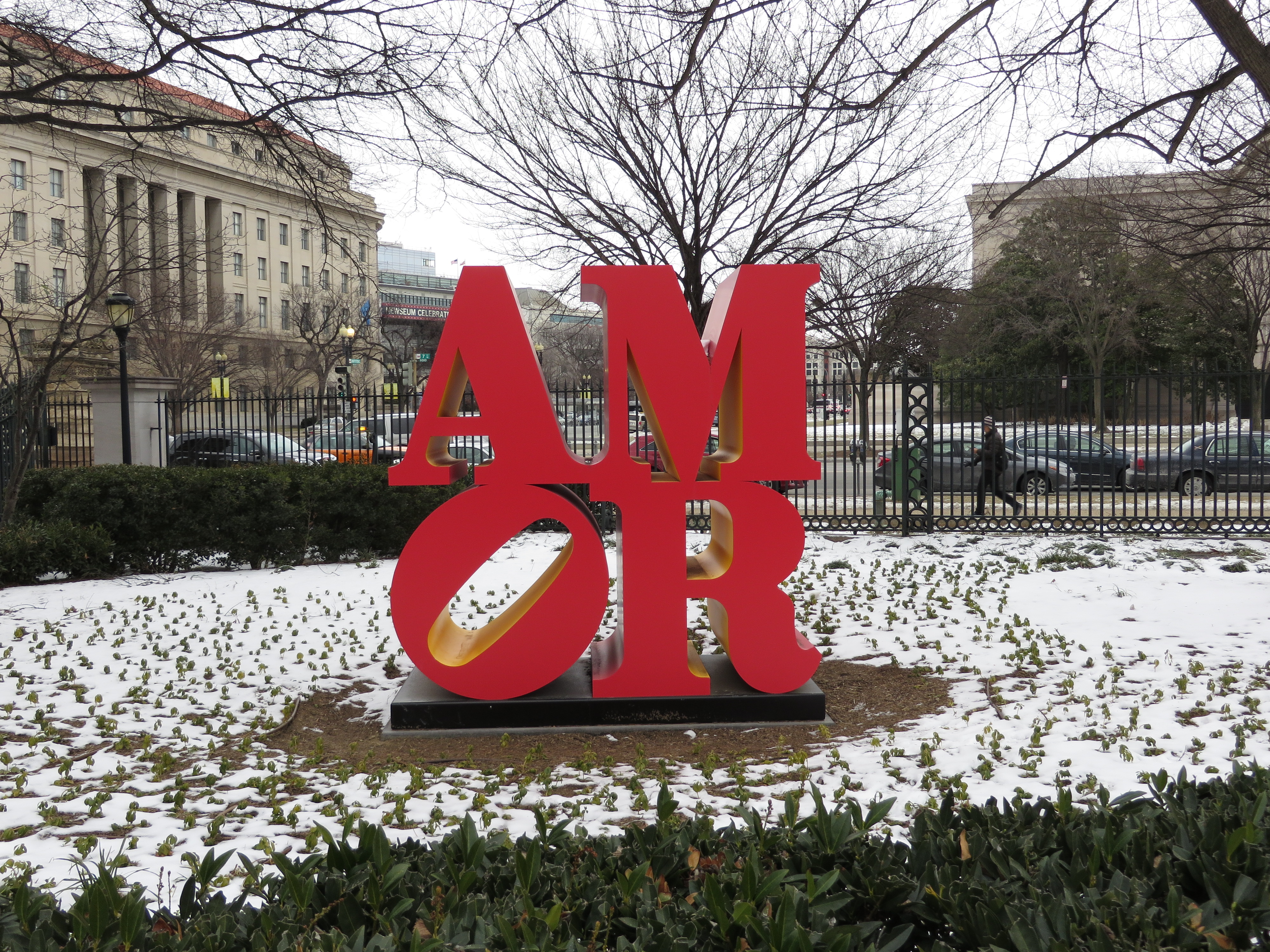 Today I walked through the Sculpture Garden. Snow on the ground. Temperatures in the 20s. Here’s my message for the day from the work of Robert Indiana: