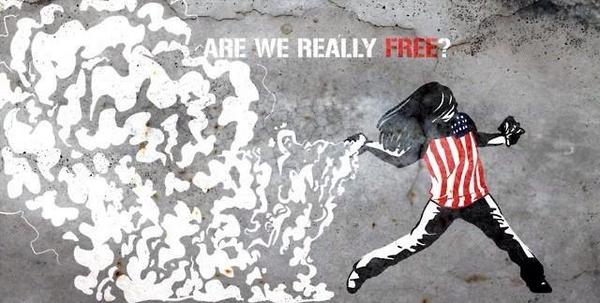 Some interpret the photo as a young man throwing a fire-bomb at the police. Some interpret it as a young man throwing a tear-gas canister back at the police. Eye-witnesses say he picked up a tear-gas canister that had been lobbed by the police and threw it in a direction to get it away from the children who were on the sidewalk nearby. Read the story here.
