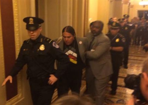 THIS JUST IN: Greg Gray Cloud, cofounder of Wica Agli, member of the Rosebud Sioux Tribe, and a prominent anti-Keystone activist. confirms, “yes that was me who sang the honor song in the [senate] gallery.” Thank you, Greg! Read more here.