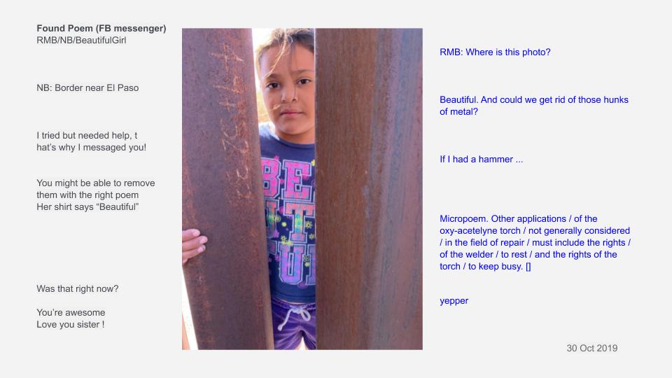 This is from a Facebook Messenger exchange between Rose Marie Berger in Washington, D.C.and Nate Bacon, from Guatemala who was visiting the U.S.-Mexico border in El Paso, Texas. Nate took the photo from the U.S. side of a Beautiful Girl on the Mexico side.