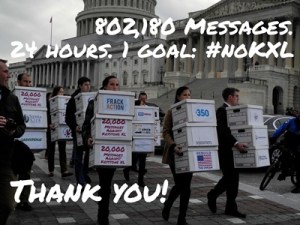 “The last 24 hours were the most concentrated blitz of environmental organizing since the start of the digital age,” explained McKibben. “Over 800,000 Americans made it clear that Keystone XL is the environmental litmus test for Senators and every other politician in the country. It’s the one issue where people have come out in large numbers to put their bodies on the line, and online too: the largest civil disobedience action on any issue in 30 years, and now the most concentrated burst of environmental advocacy perhaps since the battles over flooding the Grand Canyon ….”